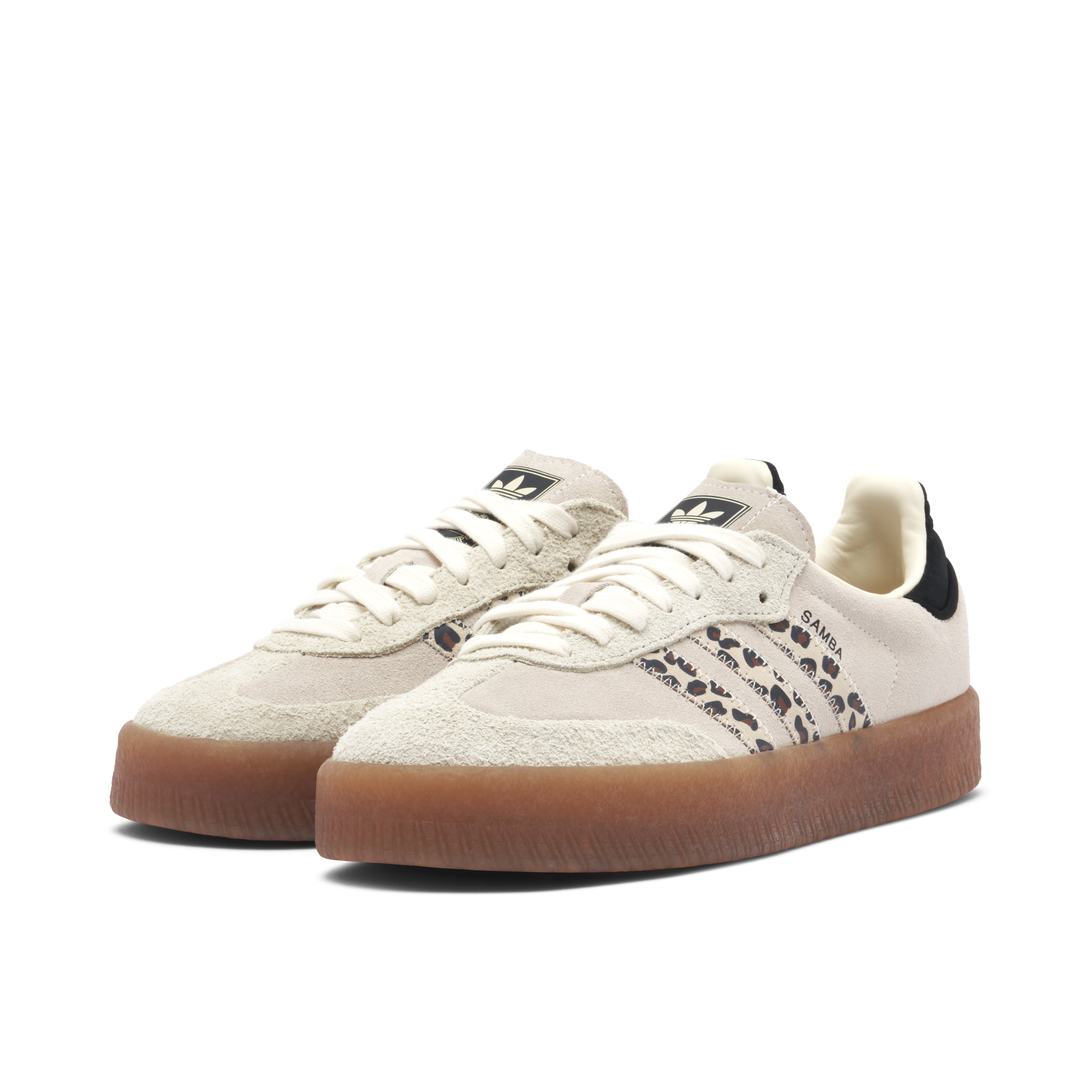 The Adidas Sambae Leopard Off White Womens combines elegance with wild flair, featuring a striking leopard print on classic adidas stripes. Its off-white suede upper contrasts with a plush, textured toe box, while a sleek black heel tab adds depth. The gum sole ensures durability and grip, ideal for urban adventures. Designed for comfort, it offers excellent cushioning and a snug fit. Perfect for making a statement in streetwear or elevating casual outings, the Adidas Sambae Leopard Off White Womens complements any wardrobe with its chic and versatile style.
