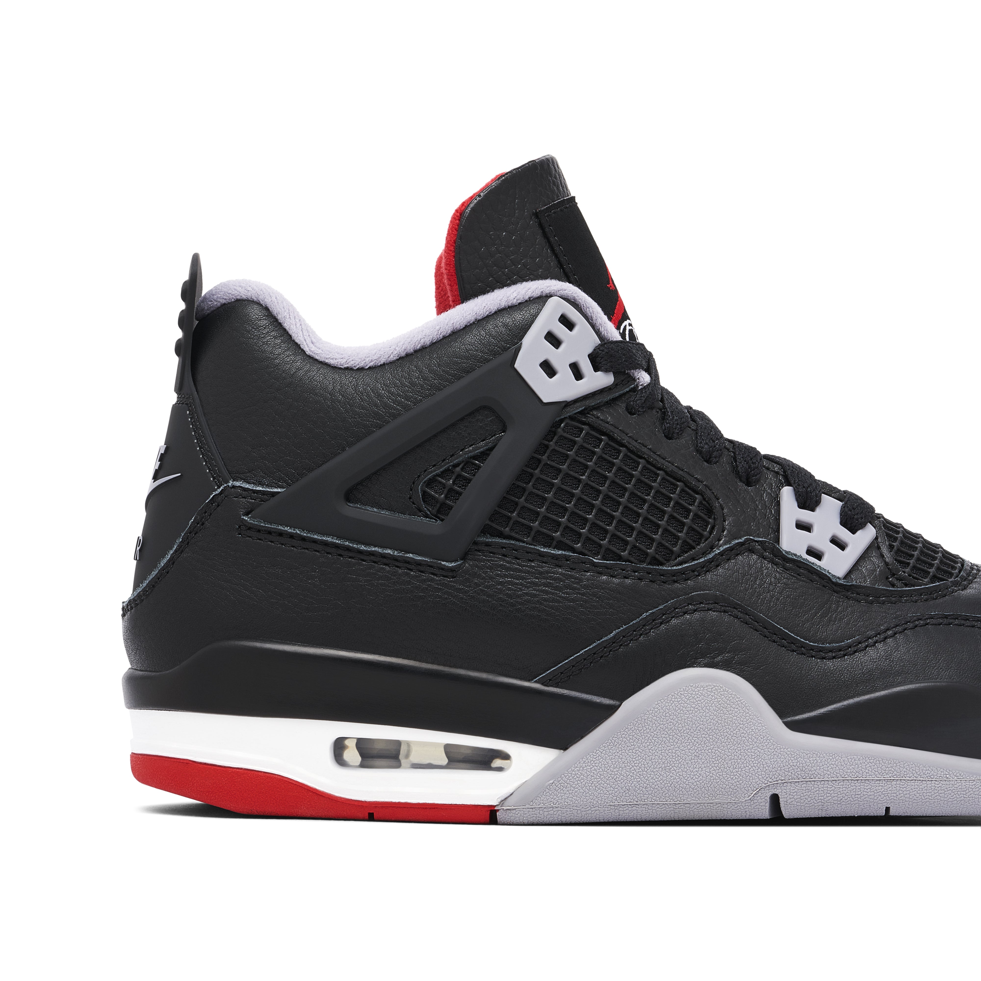 The Air Jordan 4 OG Bred Reimagined GS stands out with its iconic black, grey, and bold red colourway, blending premium leather with mesh side panels. The design features a sleek black leather toe box, grey mesh accents, and distinct Jumpman branding on the tongue and heel. The shoe delivers exceptional comfort with its cushioned sole and Air cushioning technology, providing excellent support and grip. Perfect for streetwear enthusiasts, the Air Jordan 4 OG Bred Reimagined GS seamlessly complements urban styles, making it a timeless choice for both casual and sporty occasions.