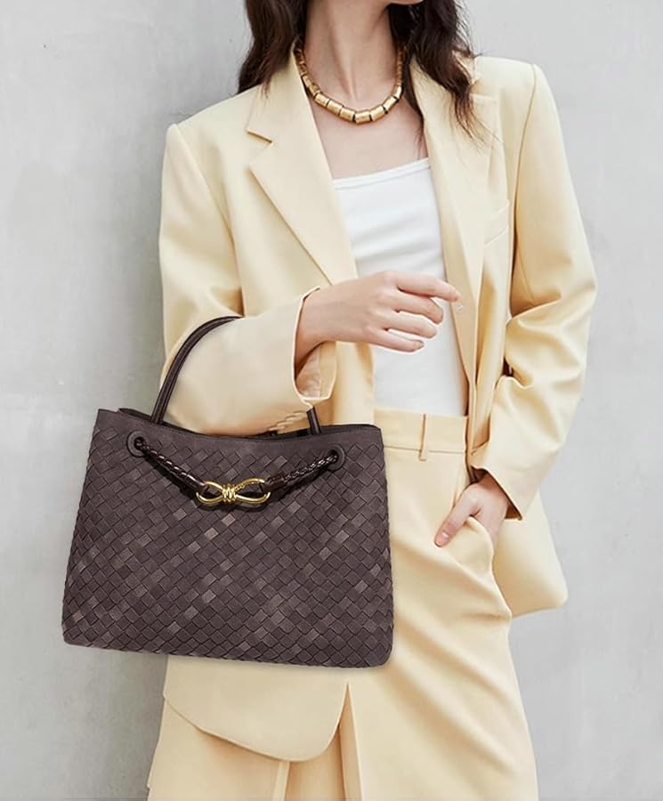 Add effortless style to your everyday wardrobe with this woven suede effect tote in a warm coffee tone. The textured finish gives the bag a premium feel while keeping it relaxed enough for daily wear.