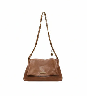 A stylish and versatile shoulder bag crafted in soft, smooth faux leather with a relaxed, slouchy shape. It features a double chain strap design with gold-tone detailing, giving it a chic and modern finish. The spacious interior is perfect for carrying your daily essentials, while the magnetic top closure keeps everything secure. Ideal for everyday wear, evenings out or adding a polished touch to any outfit.