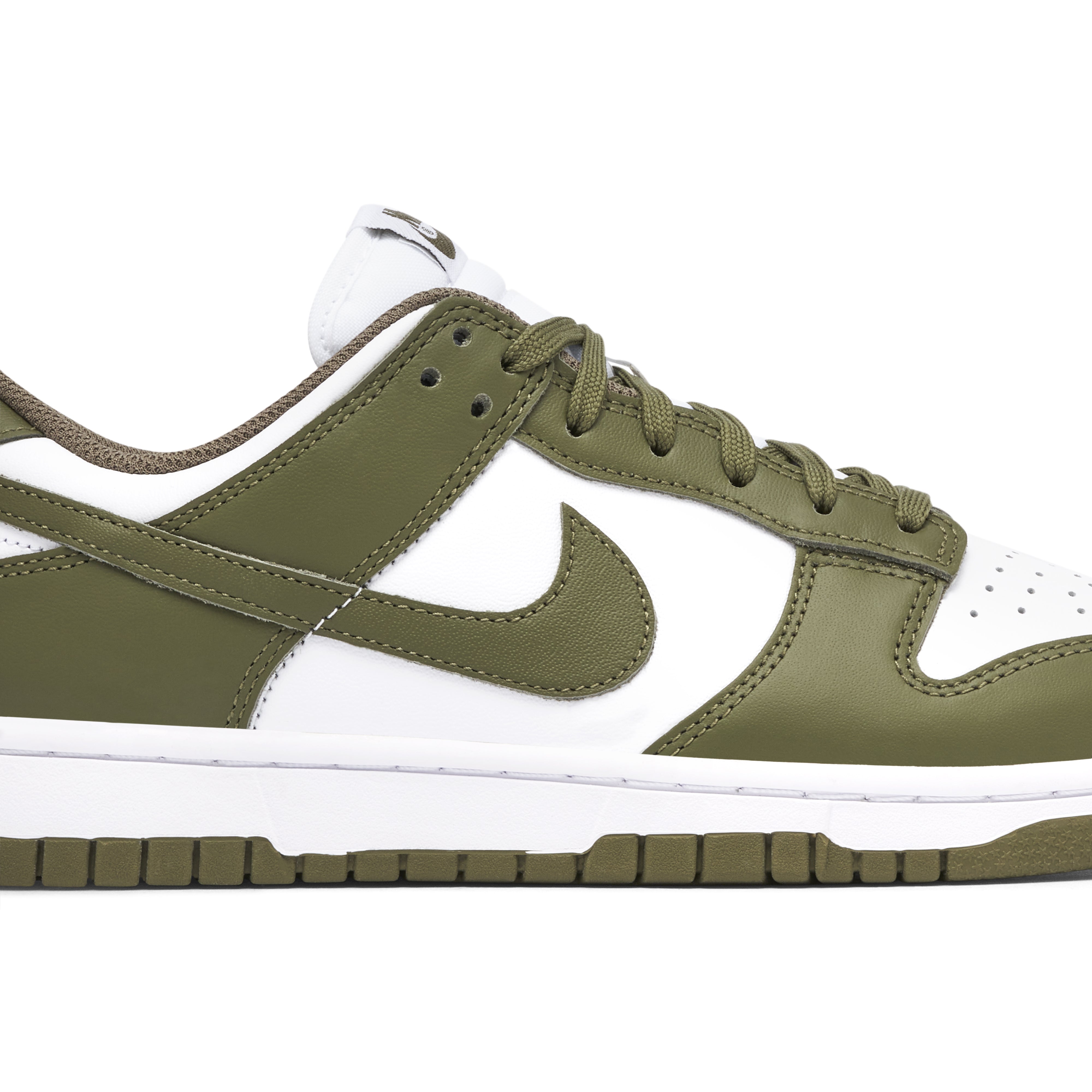 The Nike Dunk Low Medium Olive Womens is a captivating blend of style and versatility. The shoe features a sleek Medium Olive leather overlay juxtaposed with crisp white underlays for a classic look. The signature Nike Swoosh graces the side, adding iconic flair. With a perforated toe box, padded heel, and cushioned sole, this sneaker ensures both comfort and support. Perfect for streetwear enthusiasts, it brings a subtle edge to casual outings, complementing both urban and laid-back styles.