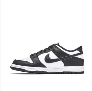 The Nike Panda Dunk Low Black White GS combines classic style with modern versatility. Its sleek black and white leather overlay defines a timeless monochrome aesthetic. Bold Nike Swoosh logos adorn the sides, while a low-top design ensures comfort. The perforated toe box enhances breathability, and cushioned soles provide exceptional support. Perfect for streetwear enthusiasts, these trainers offer grip and durability, effortlessly complementing casual outfits.
