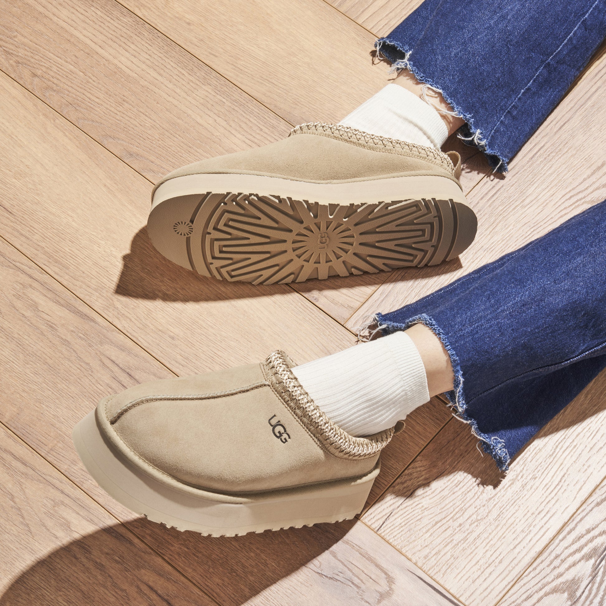 The UGG Tazz Slipper Mustard Seed Womens wraps your feet in luxury with its plush suede exterior and detailed stitch trim. This slipper radiates a warm, mustard hue, perfectly contrasted by its robust sole that assures grip and durability. Emphasising comfort, the design features an easy slip-on structure and a cushioned insole. With its combination of style and functionality, this UGG piece seamlessly complements a casual ensemble, making it an ideal choice for relaxed outings or cosy days indoors.