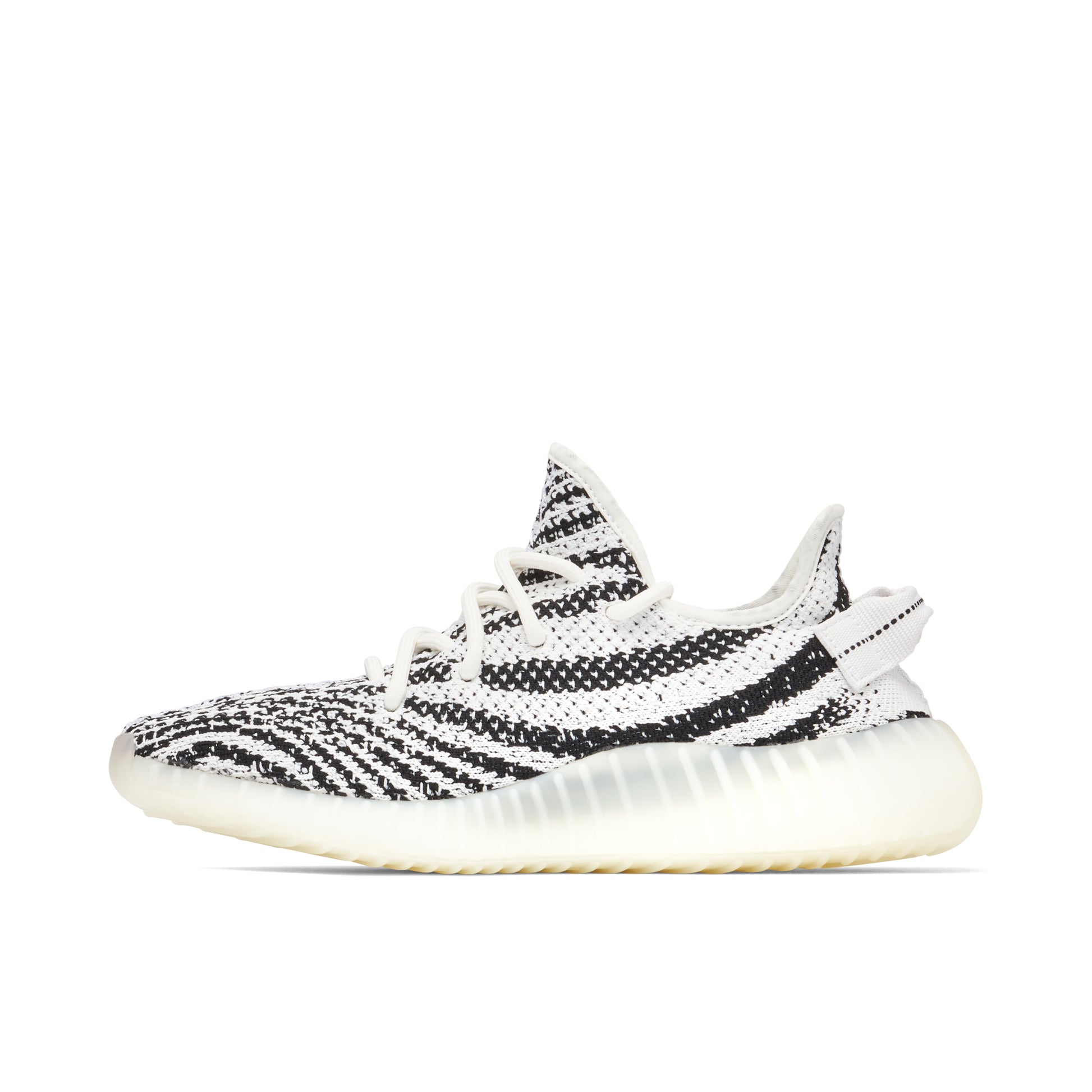 The Yeezy Boost 350 V2 Zebra captivates with its bold black and white striped pattern, mimicking the natural elegance of its namesake animal. Crafted with a breathable Primeknit upper, this sneaker boasts a dynamic texture and an iconic translucent ribbed sole infused with adidas's Boost technology for ultimate cushioning. The snug fit of the minimalist lacing system and distinctive pull tab at the heel enhance both style and function. Perfect for streetwear enthusiasts, the Yeezy Boost 350 V2 Zebra seamlessly complements any urban outfit while ensuring superior comfort.